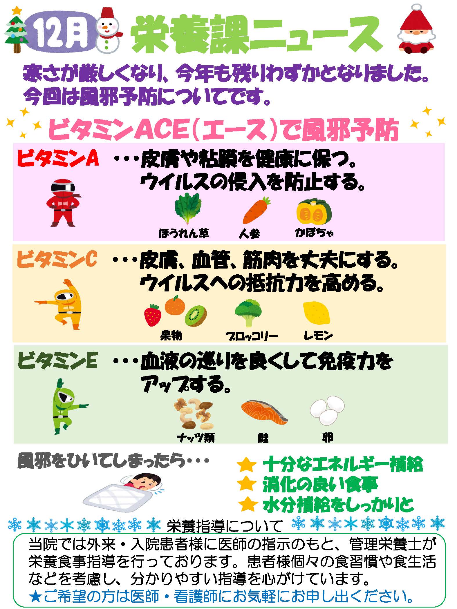 栄養課ニュース12月号「風邪予防について」を公開しました。